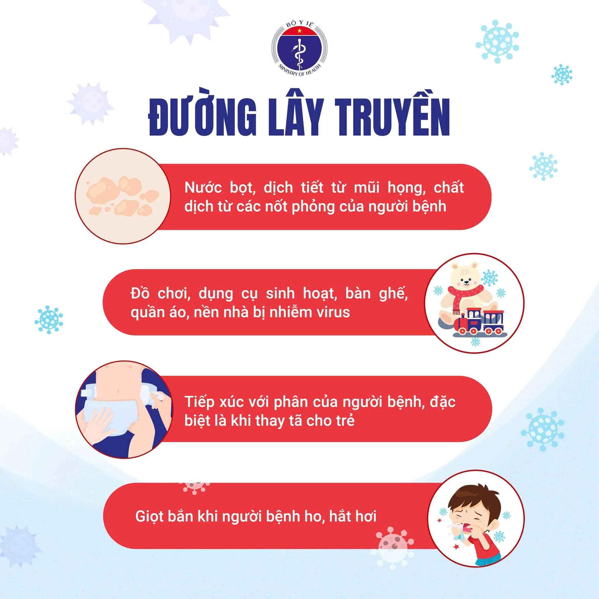 – Ổ chứa: Người bệnh hoặc người lành mang vi rút trong các dịch tiết từ mũi, hầu, họng, nước bọt, dịch tiết từ các nốt phỏng hoặc phân của bệnh nhân